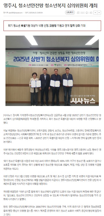 »ó¹Ý±â û¼Ò³â¾ÈÀü¸Á û¼Ò³âº¹Áö ½ÉÀÇÀ§¿øÈ¸ ȸÀÇ